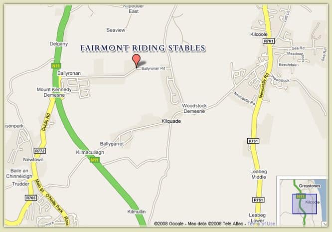 Location Fairmont Riding Stables are located 2 minutes from the N11. We are 20 minutes from the M11/M50 junction.